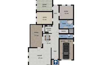 - Nappali,konyha,étkező,3 db hálószoba,fürdő,WC,kamra.közlekedő.