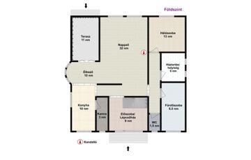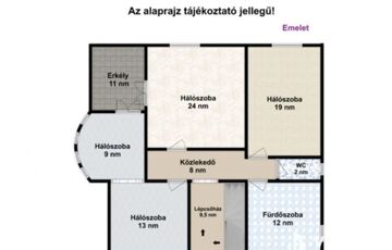 Az ingatlan alsó szintjén egy tágas, világos nappali kapott helyet, mely közvetlen kapcsolatban áll az étkezővel. A különálló, praktikusan kialakított konyha mellett egy hálószoba, fürdőszoba, külön WC, kamra, háztartási helyiség és előszoba-lépcsőházzal is található. A nappaliból egy barátságos, fedett teraszra jutunk, ami kiváló helyszíne lehet családi vagy baráti összejöveteleknek. Az emelet három nagy méretű hálószobával, egy fürdőszobával, külön mellékhelyiséggel és közlekedővel szolgálja a kényelmet – kettő szobából is megközelíthető a hangulatos erkély. Az egyik hálószoba, akár ketté is osztható, így plusz egy hálószobát kaphatunk.