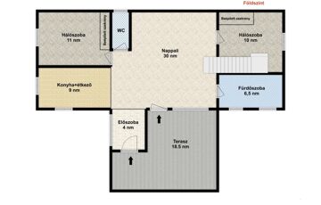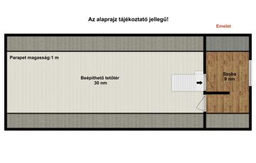 Az ingatlan belső elrendezése kiváló, a földszinten: egy tágas nappali, kettő hálószoba, konyha+étkező, fürdőszoba és külön mellékhelyiség áll rendelkezésre. A komfortot egy modern amerikai konyha és étkező biztosítja. Emeleten, jelenleg egy hálószoba lett kialakítva, de további bővítési lehetőségeket kínál egy 30 m²-es beépíthető padlástéren keresztül. A pihenéshez és kikapcsolódáshoz egy 18,5 m²-es terasz áll rendelkezésre, amely tökéletes helyszíne lehet a kerti összejöveteleknek vagy egy nyugodt reggeli kávézásnak.
