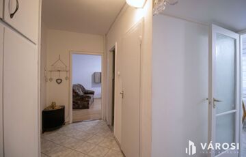 - Beépített szekrények a közlekedőben, melyek sok pakolóhelyet biztosítanak, fürdőszoba külön wc