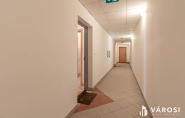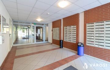 A lakás egy 2008-as, tégla építésű, modern, rendezett, csendes, tiszta és karbantartott, liftes, zárt lépcsőházú társasház földszintjén helyezkedik el.