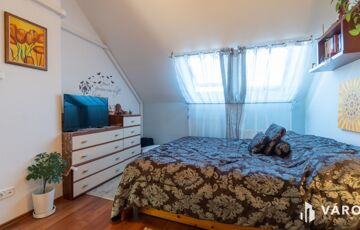 A lakáshoz saját, fűtött garázs tartozik, valamint távirányítós kapuval ellátott, térkövezett közös bejáró.