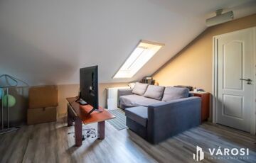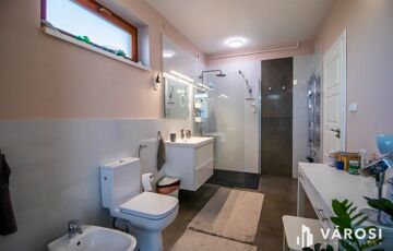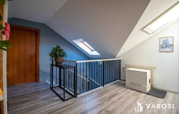 A ház 2001-ben nagycsaládosoknak készült, ezért a bruttó 225, nettó 200 négyzetméteren van benne az amerikai konyhás nappalin kívül még 5 külön hálószoba, 2 fürdőszoba, plussz egy külön WC és egy két autó beállása alkalmas, 32 négyzetméteres, fűtött garázs is. Udvar felől egy nagy, fedett terasz is lehetőséget nyújt a szabadban való pihenésre. 2013-ban történt egy felújítás és azóta is szinte új állapotban van.