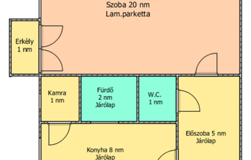A lakásban 1 szoba, konyha, előszoba, fürdőszoba, külön nyíló W.C., erkély található.