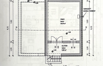 A házhoz tartozó 37,5 m²-es pince (29,39 m² pince + 8,08 m² előtér) külső lejáratos, kiválóan alkalmas tárolásra, műhelynek vagy akár borospincének.