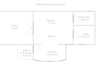 Az ingatlan elosztása kiváló: két külön nyíló szoba, valamint egy tágas nappali–étkező–konyha biztosítja a kényelmes mindennapokat.