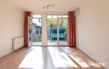 Különlegessége a munkatérből közvetlenül nyíló 9,5 m2-es, kövezett és fedett terasz, valamint az előtte lévő 10 m2-es, műfüves, saját kiskert, mely kivételesen ritka lehetőség.