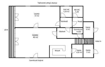 A félszuterén szinten, közvetlen utcafronti bejárattal két üzlethelyiség került kialakításra, amelyek korábban vendéglátóegységként működtek. A kiszolgálópulttal, eladótérrel, raktárakkal és mellékhelyiségekkel rendelkező helyiségek kiváló lehetőséget biztosítanak vállalkozás működtetésére, irodának, szolgáltatásnak vagy akár újabb külön bejáratú lakrész kialakítására. A tágas, világos terek és a jó beosztás mellett a 2018-ban elvégzett műszaki korszerűsítések tovább növelik az ingatlan értékét és kényelmét.