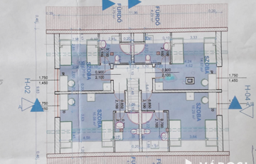Az épület három szintje – félszuterén, magasföldszint és emelet – jól átgondolt elrendezésű. A magasföldszinten és az emeleten összesen nyolc klimatizált szoba található, mindegyik saját fürdőszobával és egyedi fogyasztásmérővel, ami különösen előnyös több lakrész vagy szálláshely üzemeltetése esetén. A földszinten négy szoba, négy fürdő és egy konyha, míg az emeleten további négy szoba és négy fürdő kapott helyet. Az ingatlan korábban szálláshelyként működött, és akár 24–30 fő befogadására is alkalmas.