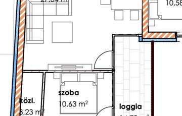 A 1 db amerikai konyhás nappalival, 1db hálószobával, 1 db fürdőszobával, közlekedővel, loggiával rendelkezik.
