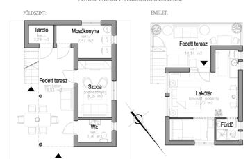 - Földszint: ~22,87 m2 + fedett terasz ~17,00 m2