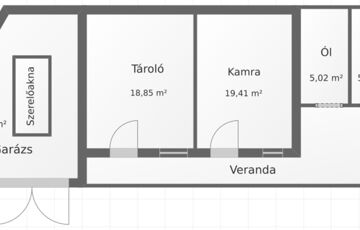 A ház egy 2864 m²-es telken fekszik, ahol egy melléképület is található, melynek része egy 27 m²-es szerelőaknás garázs, ez különösen vonzó lehet autószerelők vagy hobbi barkácsolók számára. A garázs mellett található egy kamra és egy tároló helyiség, amelyek közel azonos méretűek (19 m²).