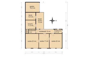 - Helyiségek: a ház 3 tágas szobával és 2 fürdőszobával rendelkezik, kényelmes életteret biztosítva minden családtag számára, a konyha külön helyiségben található, de ez is könnyen alakítható ízlés szerint ha amerikai konyhás nappalit szeretne