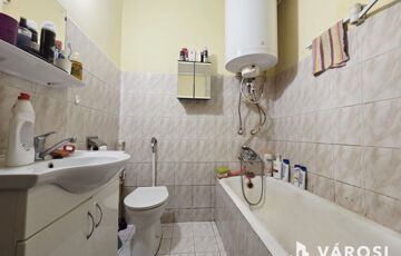 A fürdőszobában villanybojler biztosít bőséges melegvíz ellátást.