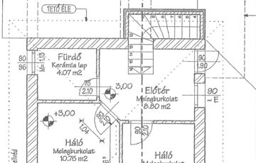 Hőleadás: Padlófűtés a hidegburkolatos helyiségekben, radiátorok a hálószobákban.