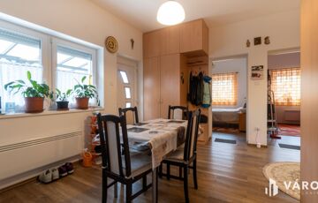 A 350 m2-es, rendezett telken álló 85 m2 összalapterületű ingatlan két szeparált lakrészre oszlik: