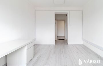 A 16 m2-es iroda az irodaház 1. emeletén helyezkedik el. A helyiség laminált padlóval burkolt.