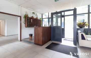 A 3 emeletes irodaépületben felújított elektromos hálózat és műanyag nyílászárók adják az irodák modernizált hátterét.