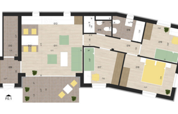 -Elrendezés: 3 szoba + amerikai konyhás nappali, külön fürdőszoba és külön WC.