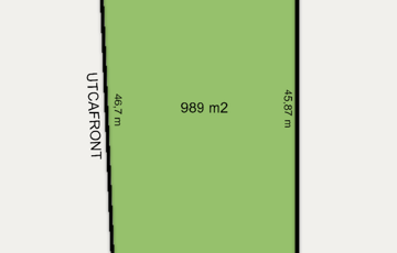 A hirdetésben szereplő sarki telek 989 m2, kiválóan alkalmas ikerház építésére is, mivel két utcafronttal rendelkezik.