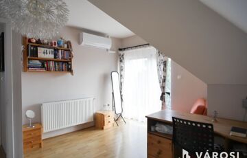 2003-ban épült, masszív szerkezetű, 38-as téglából készült, külső hőszigeteléssel ellátott, cserépfedésű családi ház eladó csendes, rendezett, kizárólag újabb építésű ingatlanokkal beépített utcában. Az otthon két szinten, átgondolt elrendezéssel biztosít kényelmes életteret akár nagyobb család számára is, összesen 4 hálószobával, tágas nappalival és galériával.