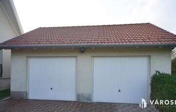 Az udvarban különálló, téglaépítésű, cserépfedésű dupla garázs található, előtte térkövezett beállóval, amely további járművek parkolását is lehetővé teszi a zárt területen belül.