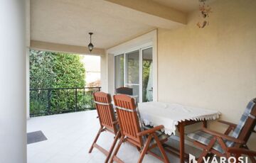 Az ingatlan megjelenése rendezett és igényes már az érkezés pillanatában: falazott alapokon álló kovácsoltvas kerítés és motoros tolókapu biztosítja a kényelmes és biztonságos bejutást, míg a zárt udvar teljes intimitást nyújt. A kert gondosan kialakított, füvesített, örökzöldekkel és sövénnyel beültetett, így a privát szféra maximálisan adott.