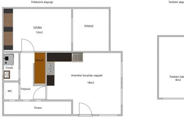 - **Nappali:** Tágas, világos tér amerikai konyhával
